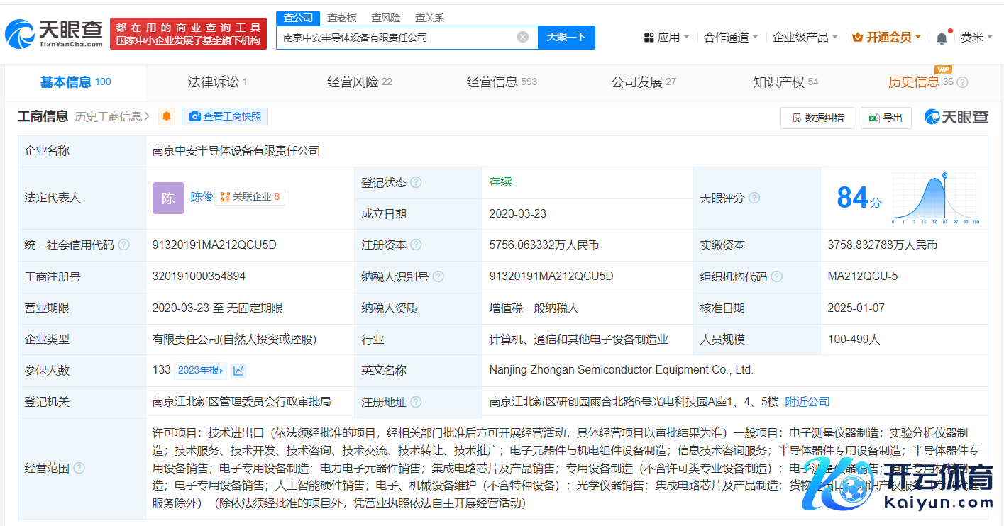 开yun体育网南京中安半导体开采有限包袱公司发生工商变更-开云(中国)kaiyun体育网址-登录入口