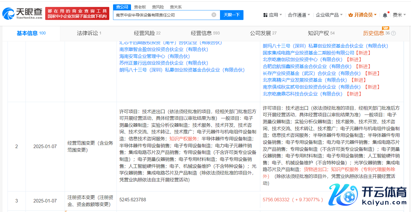 每经AI快讯,天眼查App理会,近日,南京中安半导体开采有限包袱公司发生工商变更开yun体育网,新增国度集成电路产业投资基金二期股份有限公司、北京高精尖产业发展投资基金(有限搭伙)、长存产业投资基金(武汉)搭伙企业(有限搭伙)等为推动。