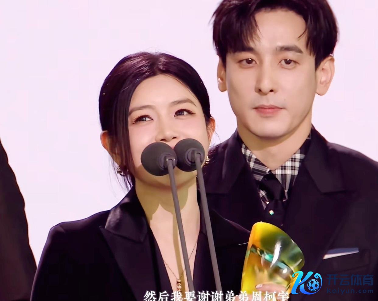 当陈妍希登台领奖并发表感言时,非常提到了她的配结伙伴,也即是《狙击蝴蝶》的男主角周柯宇。